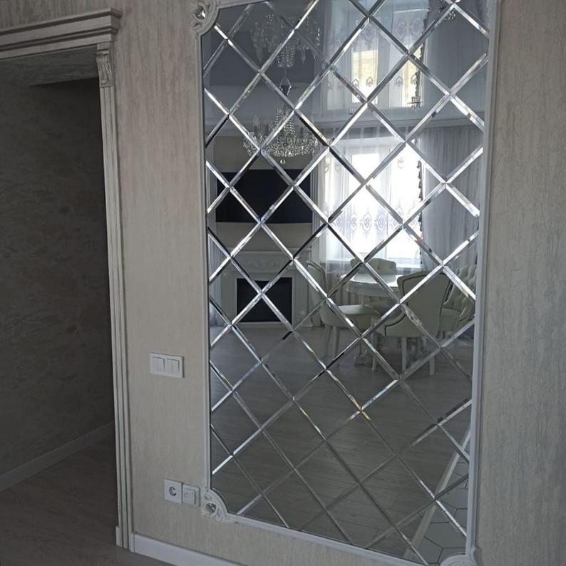 Использована зеркальная квадратная плитка с фацетом.