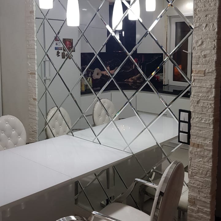 Использована зеркальная плитка "вытянутый ромб" с фацетом.